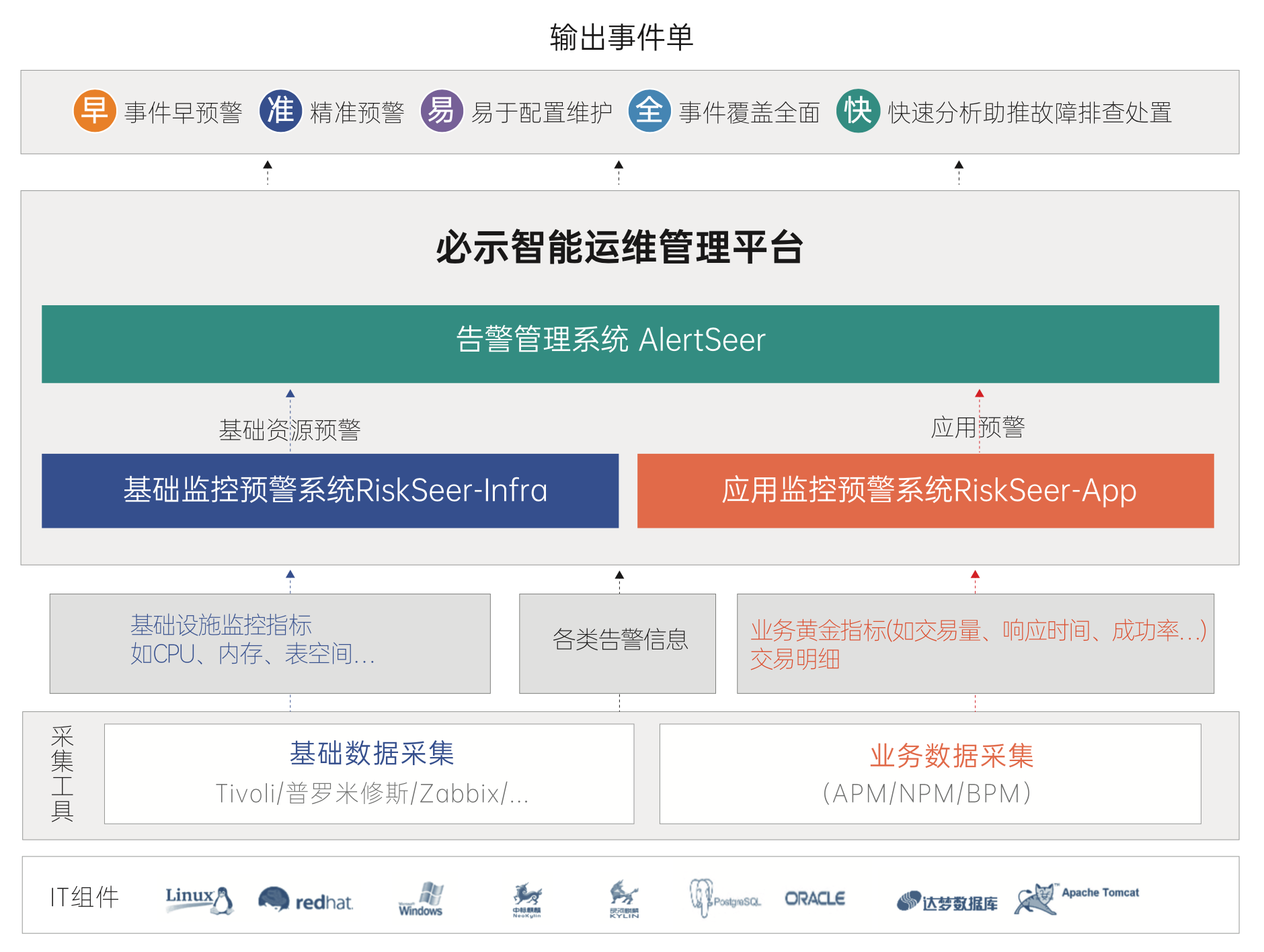 必示科技发布了三款智能运维产品:应用监控预警系统(RiskSeer-App)、基础监控预警系统(RiskSeer-Infra)和告警管理系统(AlertSeer),并以真实运维场景为案例进行了产品的现场展示。必示科技智能运维产品具备“早准快全易”的特点: