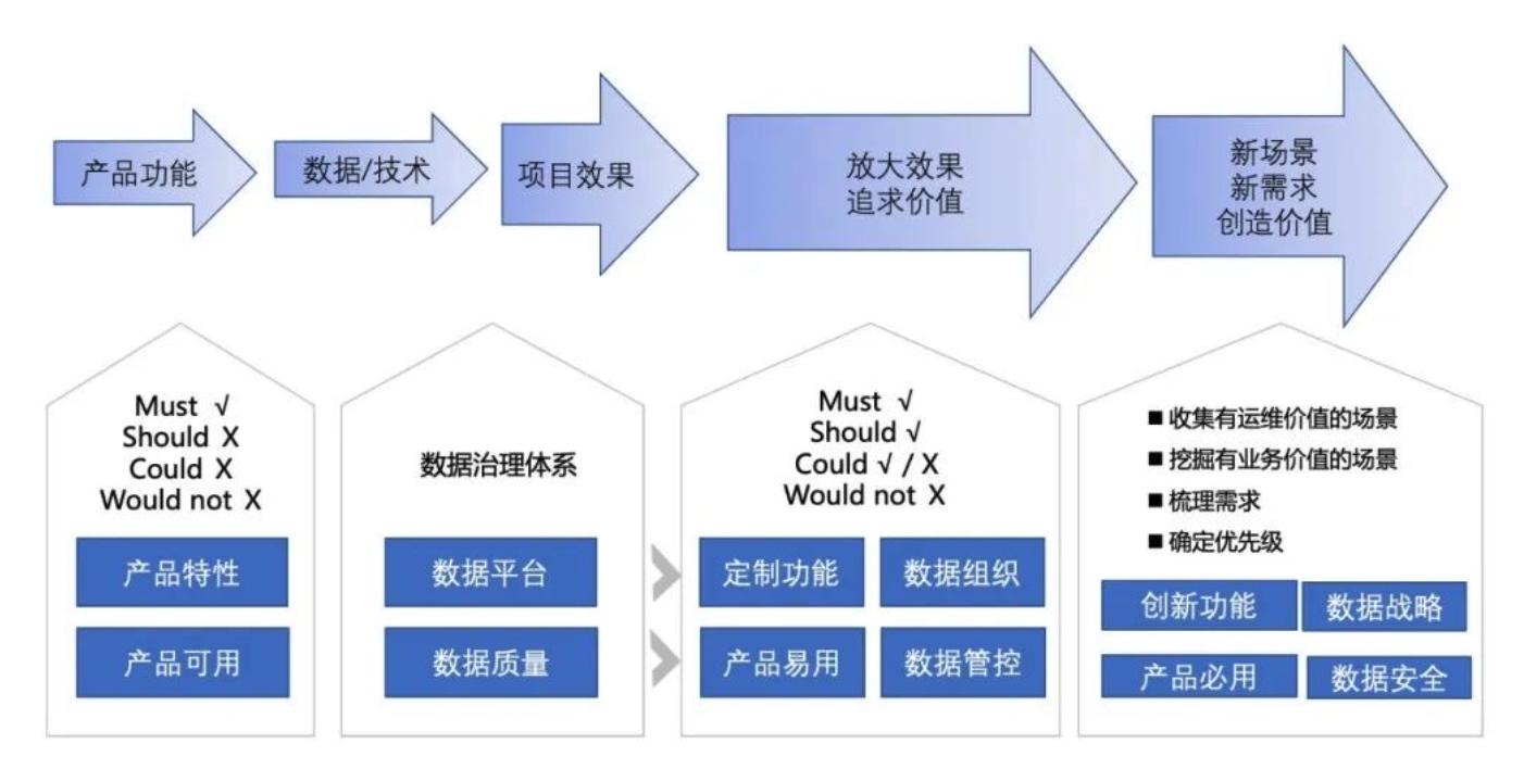 根据必示科技服务过60余家数字化转型企业的经验来看,大约20%的组件故障导致了80%的业务故障。建议在做初期智能运维建设时,首先基于当前运维和数据的现状,以“急迫需求”和“必要功能”入手,引入和复制行业通用功能为主的成功模式,以产品“尽快可用”和“出效果”为目标建设智能运维系统。同时为了当前和后续效果的持续提升,建议数据治理与数据消费场景并行建设。